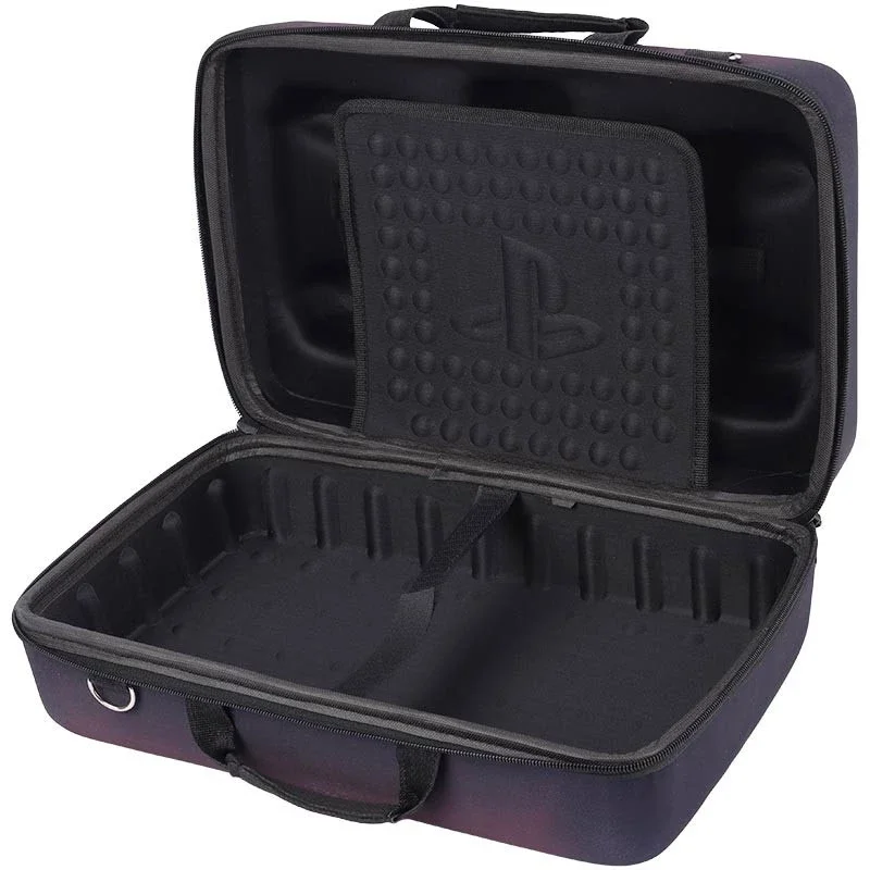- مخصوص حمل پلی استیشن ۵ اسلیم استاندارد و دیجیتال - مجهز به قسمتی جداگانه جهت نگهداری ۲ عدد دسته بازی / کابل و لوازم جانبی - دارای دسته جهت حمل آسان با امکان متصل کردن بند رودوشی - مقاوم در برابر رطوبت، فشار و ضربه های احتمالی