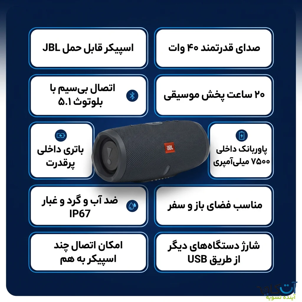 نسخه بهبود یافتهتر این اسپیکر jbl charge 6 می باشد، برای مقایسه بهتر به این محصول مراجعه کنید.