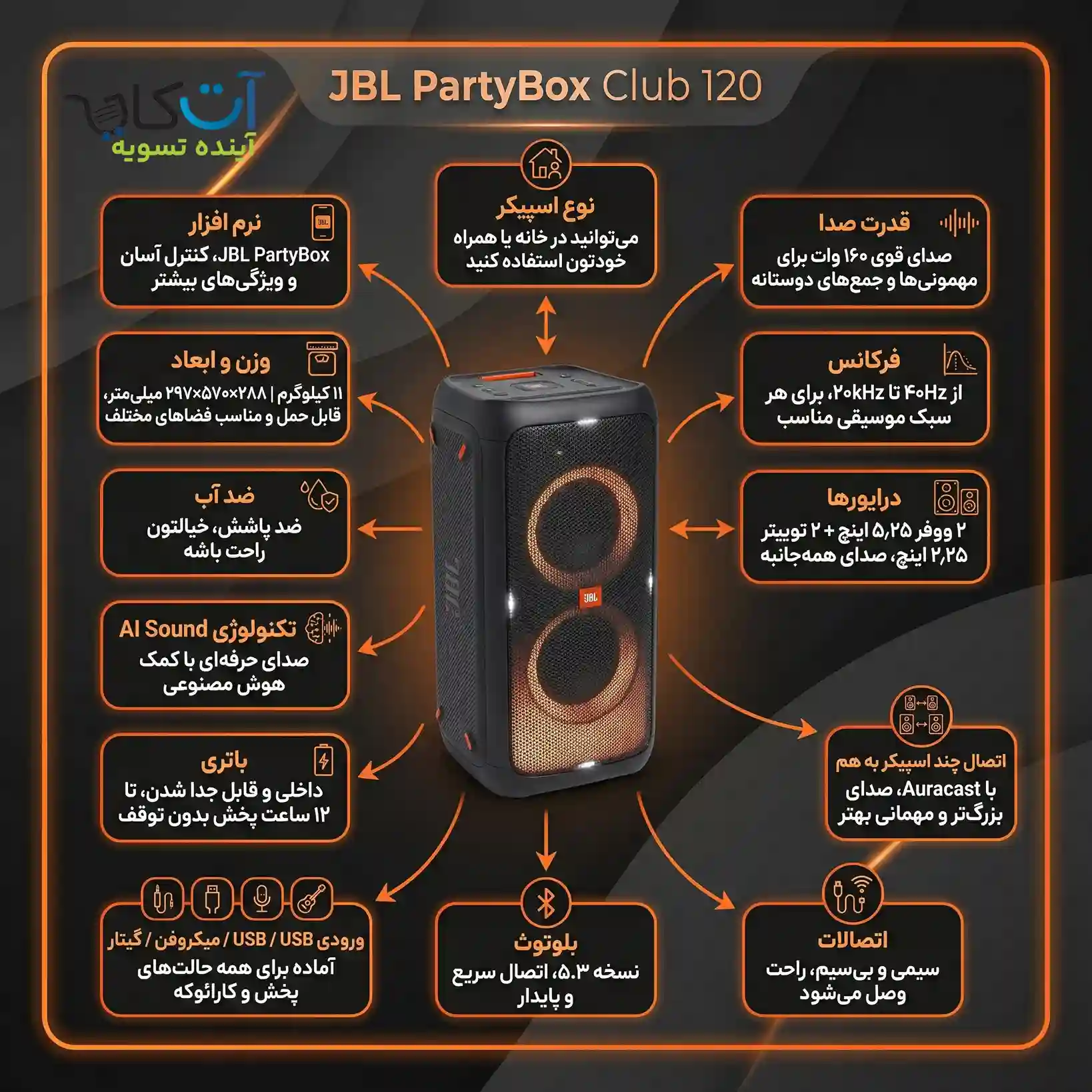 - 160 واتی و توانایی پخش موزیک تا 12 ساعت